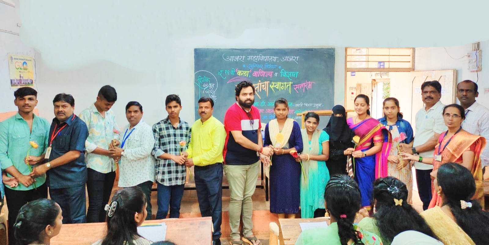 आजरा महाविद्यालयामध्ये इयत्ता अकरावी कला, वाणिज्य आणि विज्ञान मधील नवागतांचा स्वागत सोहळा संपन्न झाला