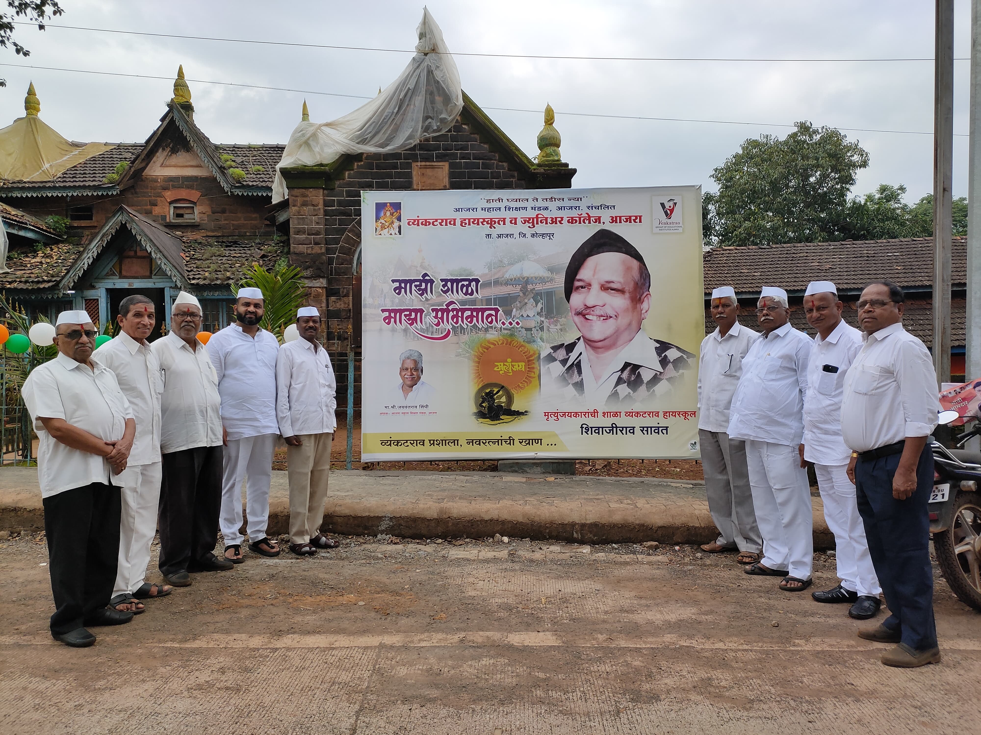 भारतीय स्वातंत्र्य दिनाचे औचित्य साधून “माझी शाळा माझा अभिमान” या उपक्रमांतर्गत व्यंकटराव प्रशालेचे माजी विद्यार्थी व ख्यातनाम साहित्यिक ‘मृत्युंजय’ कार शिवाजीराव सावंत यांचे साहित्यिक योगदान व हायस्कूलमध्ये घेतलेले शिक्षण या पार्श्वभूमीवर आजरा महाल शिक्षण मंडळ आजराचे अध्यक्ष श्री. जयवंतराव शिंपी यांच्या प्रोत्साहनातून व संचालक श्री. अभिषेक शिंपी यांच्या मार्गदर्शनातून प्रशालेसमोर माझी शाळा… मृत्युंजयकारांची शाळा… हा फलक लावण्यात आला. अध्यक्ष जयवंतराव शिंपी यांच्या हस्ते फलकाचे अनावरण करण्यात आले.
