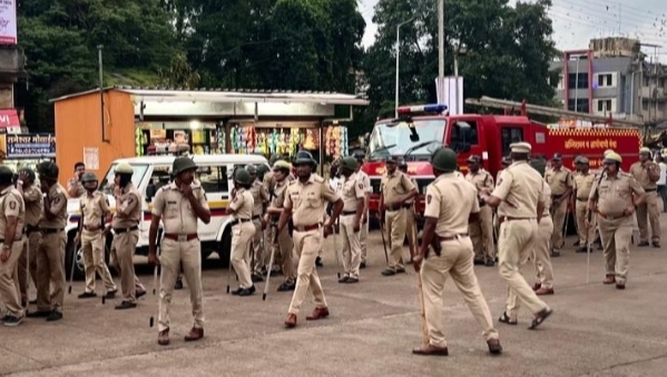 आजरा पोलिसांकडून दंगल काबू नियंत्रण प्रात्यक्षिके