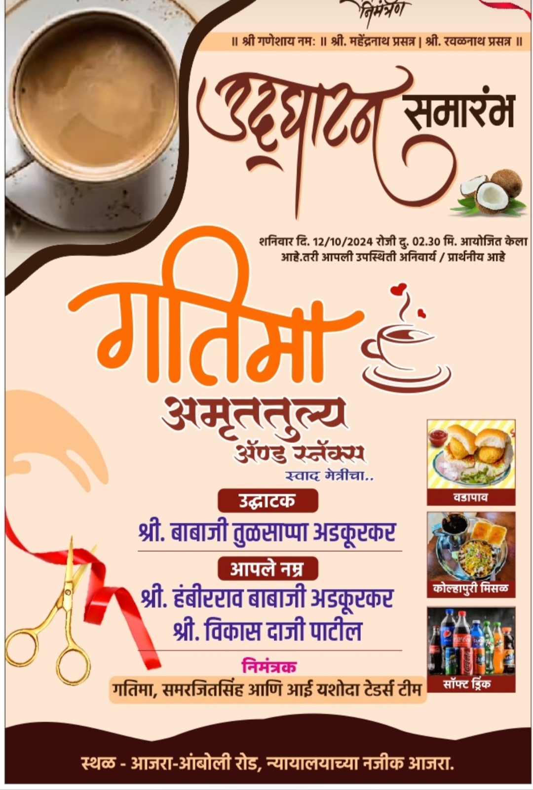 समर्थ कृपा रेसिडेन्सी , भगवा रक्षक चौक, सोमवार पेठ, दत्त मंदिरा समोर, आजरा