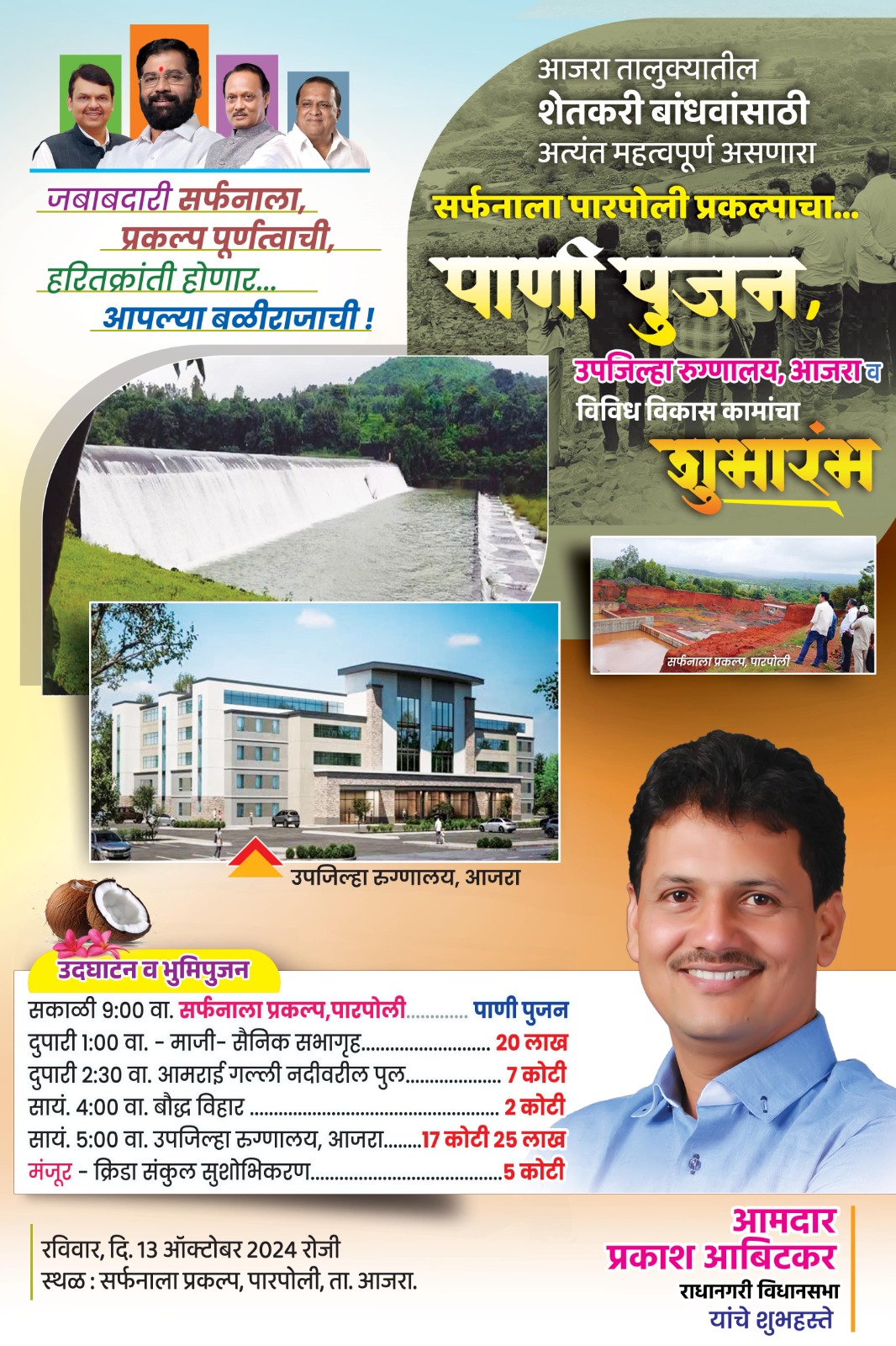 आजरा तालुक्यातील कोळींद्रे जिल्हा परिषद मतदार संघामध्ये गेल्या पाच वर्षांमध्ये आमदार राजेश पाटील यांच्या प्रयत्नातून प्रचंड विकास कामे झाली असून या जि.प. मतदारसंघात नवीन ३ कोटी ६२ लाख रुपयांच्या विकास कामांना मंजुरी मिळाली असल्याने तेथे ‘राजेश’ पर्व दिसत आहे. रस्त्यांचे खडीकरण डांबरीकरण गावांचे अंतर्गत सुशोभीकरण, ख्रिश्चन वस्त्या व स्मशानभूमीकडे जाणारे रस्ते, हायमॅक्स दिव्यांची व्यवस्था यासह विविध कामांचा समावेश आहे.