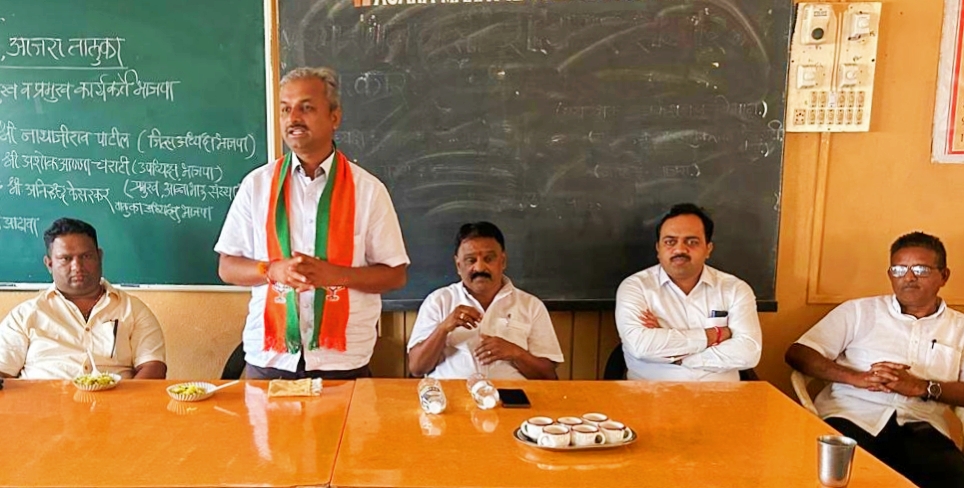 विधानसभा निवडणुकीत महायुतीला आजरा तालुक्यातून भरभरून मिळालेला प्रतिसाद हा स्थानिक कार्यकर्त्यांनी केलेल्या कामाची पोहोच पावती असून तालुक्यातील भाजपा कार्यकर्त्यांचा या यशामध्ये मोठा वाटा आहे. पाठोपाठ होत असलेल्या जिल्हा परिषद व पंचायत समिती निवडणूकांमध्येही एकसंघपणे कार्यकर्त्यांनी सामोरे जाण्याच्या दृष्टीने आतापासूनच तयारीला लागावे असे आवाहन भाजपा जिल्हाध्यक्ष नाथाजी पाटील यांनी केले. आजरा येथे भाजपा कार्यकर्त्यांच्या बैठकीत ते बोलत होते कार्यक्रमाच्या अध्यक्षस्थानी अण्णाभाऊ संस्था समूहाचे प्रमुख व भाजपाचे जिल्हा उपाध्यक्ष अशोकअण्णा चराटी होते.