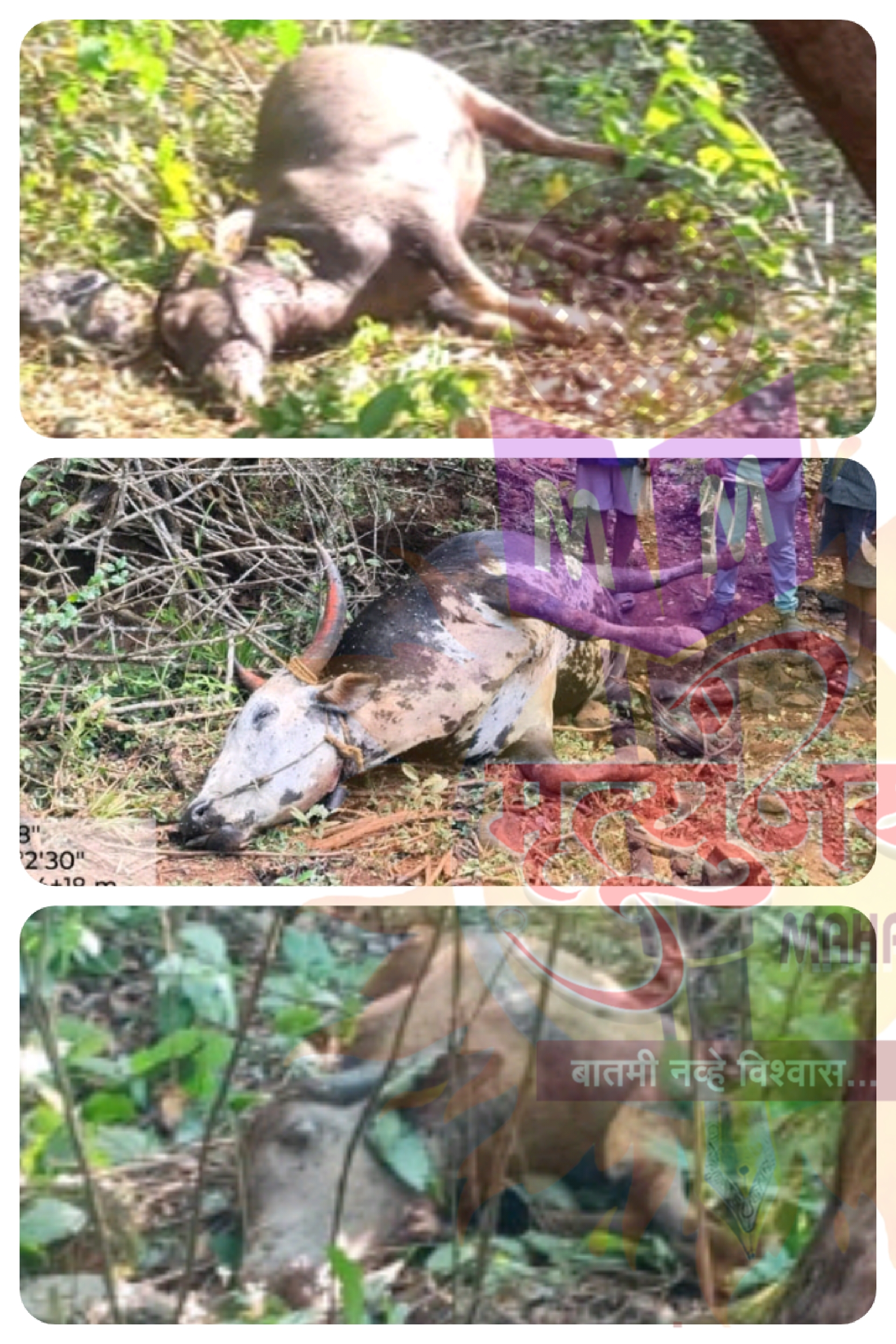 वन विभागाने याचा अधिक तपास केला असता मृत जनावरांच्या आजूबाजूला पट्टेरी वाघाच्या पायाचे ठसे आढळून आलेले आहेत. वनविभागाने मृत जनावरांचे पंचनामे करून नुकसान भरपाईच्या पार्श्वभूमीवर अहवाल वरिष्ठांकडे दाखल केले आहेत.