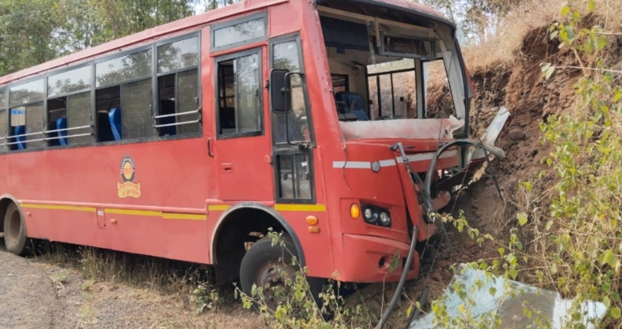 गणेशवाडी ता .आजरा येथून सव्वा अकराला सुटणाऱ्या एसटीचा गणेशवाडी ते कासारकांडगावच्या उताराला ब्रेक फेल