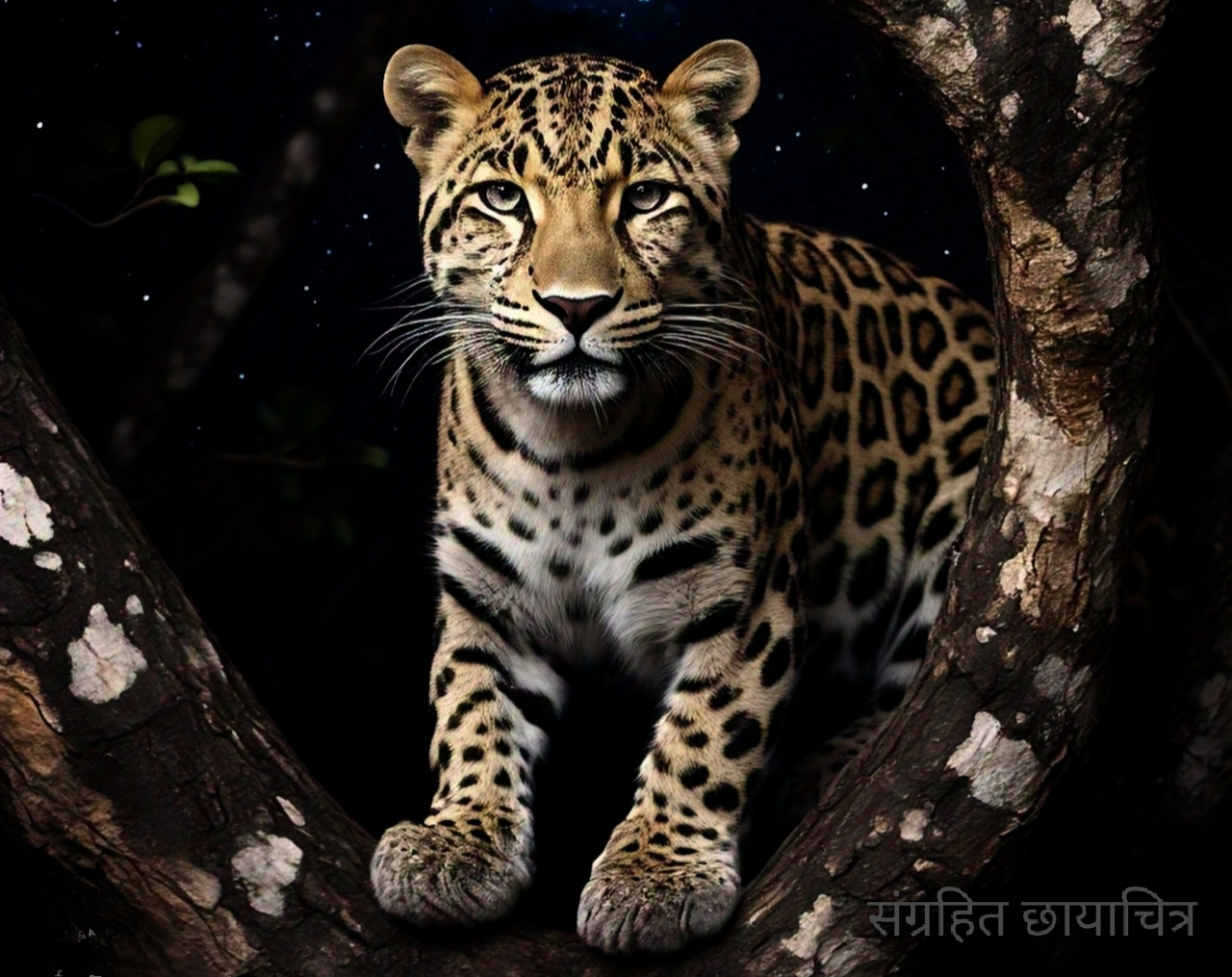 घराशेजारील झाडावर बिबट्या…?