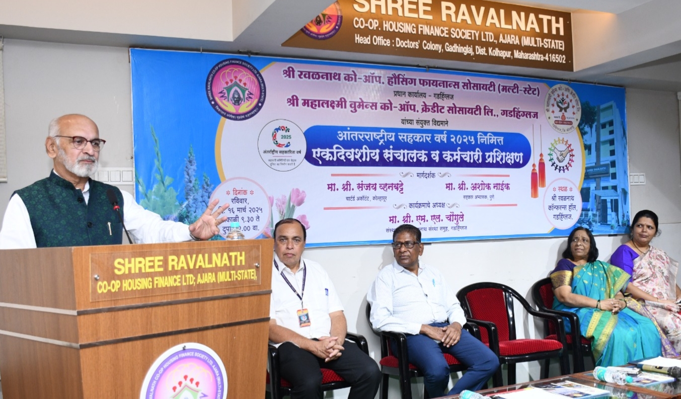 श्री रवळनाथ को-ऑप. हौसिंग फायनान्स सोसायटी आणि श्री महालक्ष्मी वूमेन्स को-ऑप. क्रेडीट सोसायटी यांच्या संयुक्त विद्यमाने आंतरराष्ट्रीय सहकार वर्ष २०२५ निमित्त संचालक व कर्मचारी यांच्यासाठी एक दिवशीय प्रशिक्षणाचे आयोजन करण्यात आले होते. याप्रसंगी सॉफ्टवेअर कसे वापरावे आणि कर्मचारी अर्थव्यवस्था या विषयी मार्गदर्शन करताना ते बोलत होते. अध्यक्षस्थानी संस्थापक अध्यक्ष श्री. एम. एल, चौगुले होते. कोल्हापूर येथील चार्टर्ड अकौंटंट श्री. संजय व्हनबट्टे, रकळनाथच्या उपाध्यक्षा सौ. मीना रिंगणे व महालक्ष्मी वुमेन्स सोसायटीच्या उपाध्यक्षा सौ. प्राची मायदेव यांची प्रमुख उपस्थिती होती.