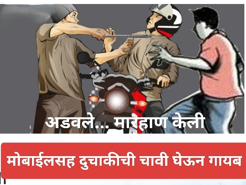 दुचाकीस्वारास काठी व दगडाने मारहाण करून मोबाईल सह दुचाकीची चावी लंपास