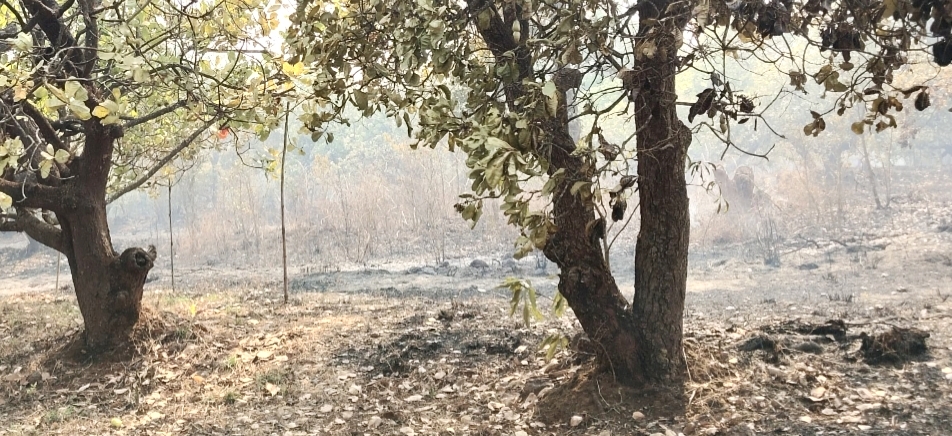 पालापाचोळा पेटवताना शेजारच्या शेतात आग पसरली