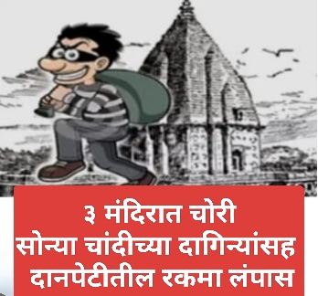 चव्हाणवाडी ता. आजरा येथे चोरट्यांनी स्थानिक मंदिरांना ‘लक्ष्य’ बनवत तब्बल तीन मंदिरातून सोने चांदीच्या दागिन्यांसह दानपेटीवर डल्ला मारत एक लाख ६७ हजार १५० रुपयांचा मुद्देमाल लंपास केला.