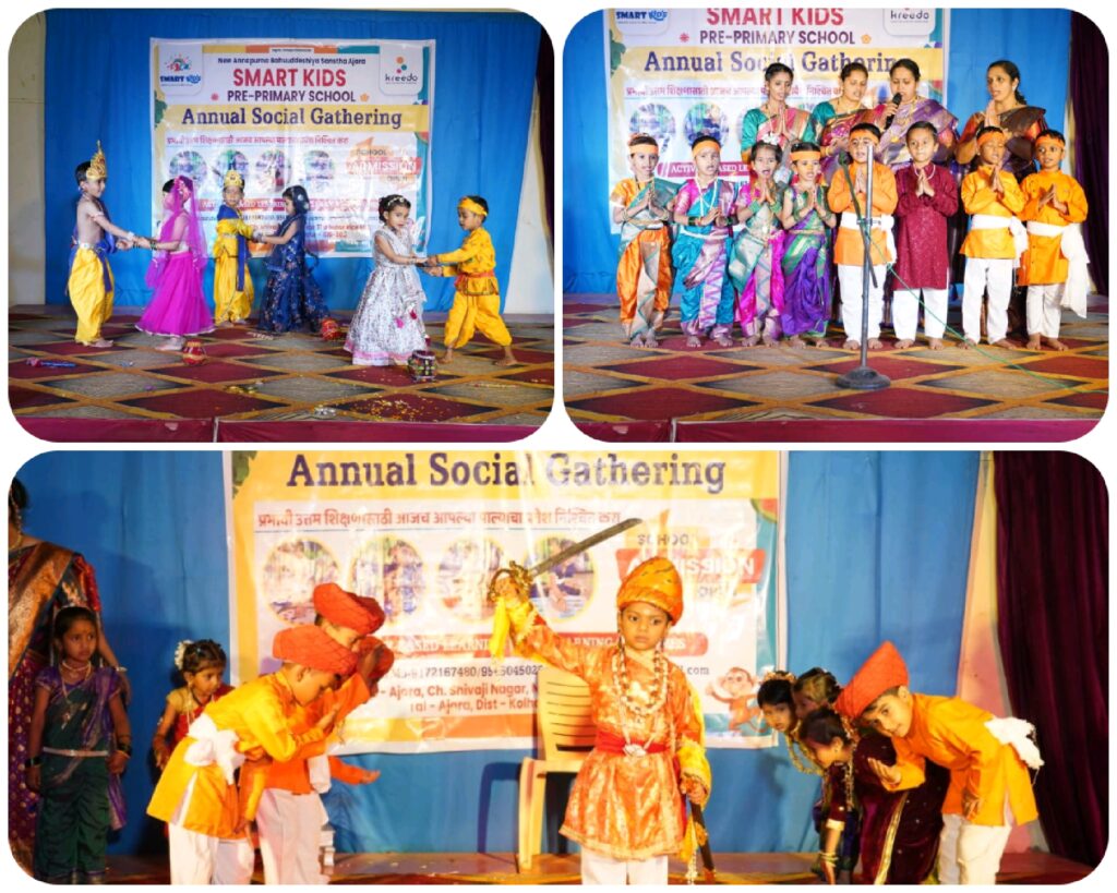 आजरा येथील न्यू अन्नपूर्णा बहुउद्देशीय संस्था, संचलित स्मार्ट किड्स प्री प्रायमरी शाळेच्या छोट्या विद्यार्थ्यांनी स्नेहसंमेलनानिमित्त विविध कार्यक्रम सादर करून बडा धमाका केला. यावेळी पारितोषिक वितरण समारंभ ही उत्साहात पार पडला.