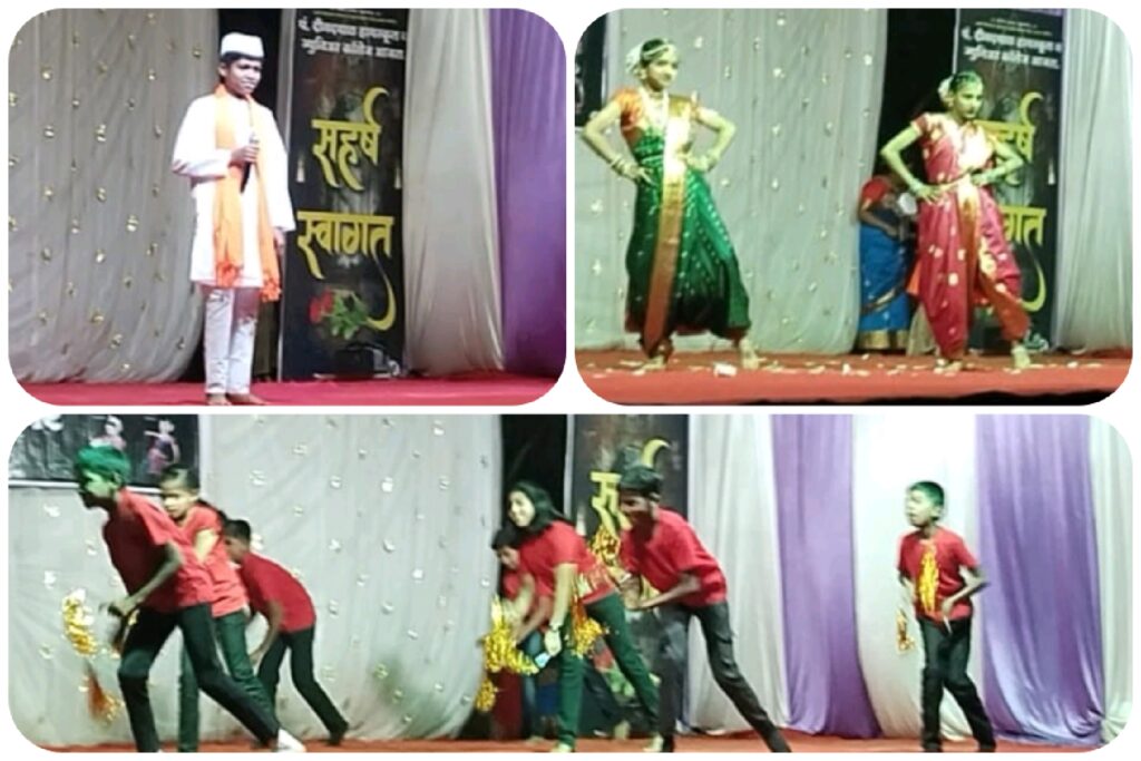 कार्यक्रमाची सुरुवात गणेश वंदनाने करण्यात आली. यानंतर राज्य बालनाट्य स्पर्धेसाठी कोल्हापूर येथे सादर करण्यात आलेले ‘ दुर्गा ‘ हे नाटक या कार्यक्रमात सादर करण्यात आले. विविध गुणदर्शन कार्यक्रम हा नाट्यकलेतील नवरसांवर आधारित होता. नृत्य, नाट्यछटा, एकांकिका,रेकॉर्ड डान्स, गीत गायन, विनोदी डान्स, लावणी, तांडव नृत्य यातून विद्यार्थ्यांनी आपल्या कलागुणांचे सुंदर सादरीकरण केले.