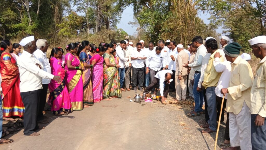 स्वागत लक्ष्मण शिंत्रे यानी केले. यावेळी सुतार यांनी साकवासाठी आमदार शिवाजीराव पाटील याच्या माध्यमातून ओढ्यावरील साकव व गावातील रस्त्यासाठी एक कोटीचा निधी उपलब्ध करून दिल्याचे तसेच सरपंच विलास जोशिलकर याच्यासह गावकरी सोबत राहिल्याने गावच्या विकासासाठी प्राधान्य दिल्याचे सागितले.
