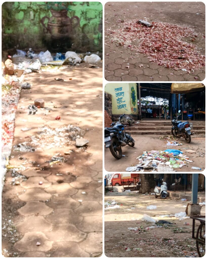गेले पंधरा दिवस शहरांमध्ये कचऱ्यासंदर्भात तक्रारी सुरू आहेत. घरगुती कचरा उचलण्याच्या नावाने शिमगा सुरू आहेच परंतु आठवडा बाजारात झालेला भाजी मंडईतील कचरा उचलणार कोण ? हा प्रश्न सध्यातरी अनुत्तरीत आहे.