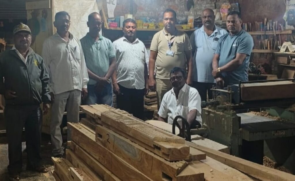 गडहिंग्लज वनपरिमंडळ विभागाने उत्तूर येथील एकनाथ सुतार यांच्या ‘विवेक फर्निचर वर्क्स’ या दुकानाची तपासणी केली असता विनापरवाना लाकूड साठा आढळून आला. तपासणीदरम्यान मनाई प्रजातीतील सागवान तसेच बिगर मनाई प्रजातीतील लिंब, सिरस व आकेशिया या झाडांचे कापीव लाकूड सापडले.