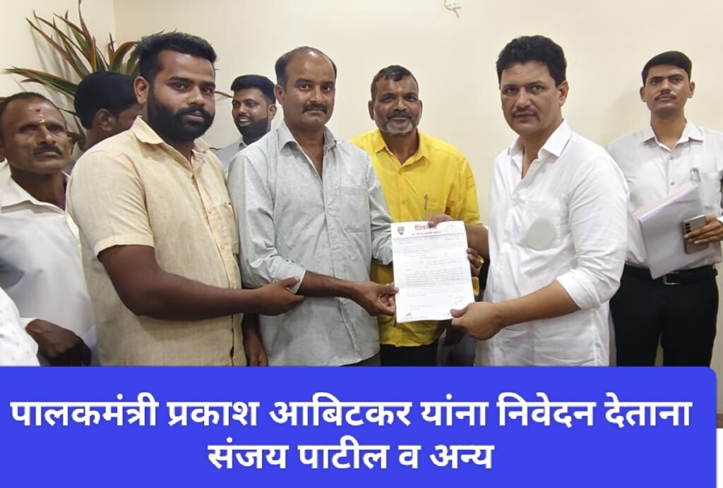 याबाबतचे लेखी निवेदन पालकमंत्र्यांना देण्यात आले असून निवेदनावर तालुकाध्यक्ष संजय पाटील, श्रीकांत देवरकर, राहुल देसाई आदींच्या सह्या आहेत.