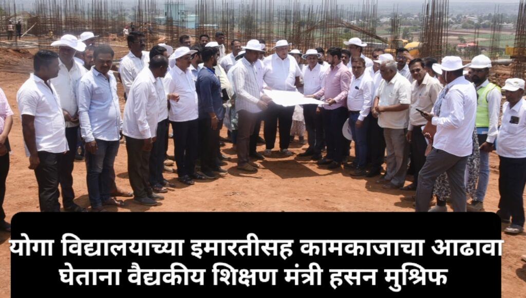 उत्तूर ता. आजरा येथे इमारतीचे काम सुरू असलेल्या शासकीय योगा आणि निसर्गोपचार महाविद्यालय व रुग्णालयाच्या कार्यस्थळाला मंत्री मुश्रीफ यांनी भेट देऊन पाहणी केली व आढावा बैठक घेतली.