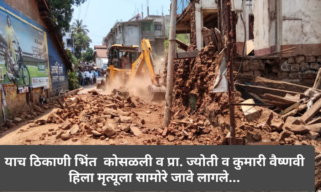 त्या घराशेजारील भिंती जवळून जात असताना अचानक भिंत कोसळली व मातीच्या ठिगाऱ्याखाली तिघीही गाडल्या गेल्या. यामध्ये शिक्षिका कुंभार व विद्यार्थिनी वैष्णवी यांचा जागीच मृत्यू झाला तर वैष्णवीची आई गंभीररीत्या जखमी झाली आहे.